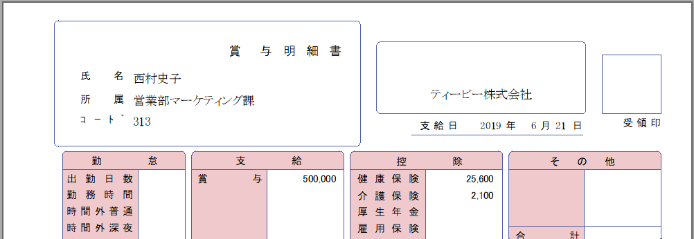 給与明細/賞与明細/市町村税徴収額一覧表/賃金台帳/金種表/賞与支払届/ 源泉徴収票/源泉徴簿兼賃金台帳/健保算定基礎届/健保月額変更届/健保資格取得届/ 健保資格喪失届/名刺/社内用名札/宛名ラベル/封筒/出勤表/辞令/給与辞令/ シフト表(印刷後スケジュール記入)/社員名簿/社員・扶養親族名簿/個人番号一覧/社員名簿一覧/勤怠表
