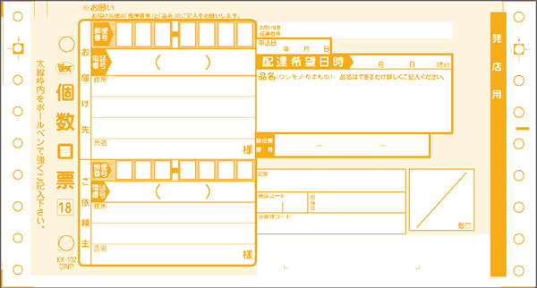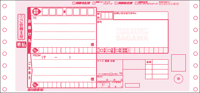 • ※宅配伝票は、各社本部発行(2015.09現在・一部旧版も含む)の連続伝票です。